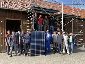 Einige Vereinsfunktionäre der Vollmaringer Vereine, rund um die Organisatoren Michael Mast und Andreas Graf, realisierten die Photovoltaik-Anlage auf dem Vereinsschuppen.