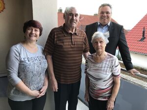 „Wir haben ein bewegtes Leben geführt“ resümiert Anna Kiefel über sechzig gemeinsame Jahre mit ihrem Ehemann Josef. Das Vollmaringer Ehepaar Kiefel feierte einen beeindruckenden Ehrentag: das Fest der Diamantenen Hochzeit. Ortsvorsteher Daniel Steinrode war zutiefst beeindruckt von diesem Jubiläum und überbrachte die Glückwünsche des Ortschaftsrates und der Ortsverwaltung sowie des Ministerpräsidenten. Er überreichte den Jubilaren Geschenke, wie zum Beispiel den Vollmaringer Kühlschrankmagnet und eine Vollmaringen Fahne. Die Familie Kiefel stammt ursprünglich aus Russland, später lebte man in Karaganda in Kasachstan, das zu diesem Zeitpunkt wie Russland zur damaligen Sowjetunion gehörte.